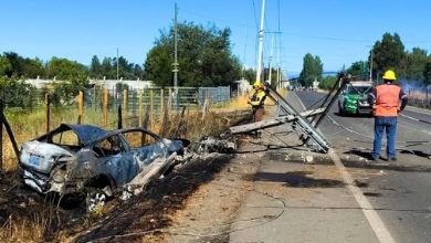 Alarma en Chillán por incendio forestal originado en horas de la tarde tras choque de vehículo contra poste
