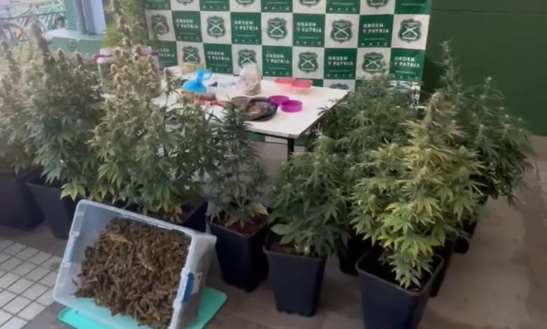 En el lugar se incautaron cerca de 4 kilos de marihuana, 21 plantas de cannabis sativa, dosis de cocaína y hongos alucinógenos, además de municiones y otros elementos vinculados al ilícito. La dependencia contaba con sistemas de iluminación, riego y aire acondicionado, adaptados exclusivamente para la producción de drogas.