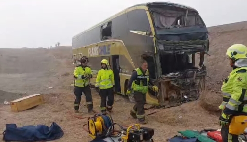 Al menos cuatro personas fallecieron y otras 15 resultaron lesionadas tras una colisión múltiple registrada este sábado en la Ruta 5 Norte, a la altura del kilómetro 1.325, en el sector del cruce Paposo, en Antofagasta. El accidente ocurrió cerca de las 07:00 horas y dejó el tránsito suspendido en ambos sentidos.
