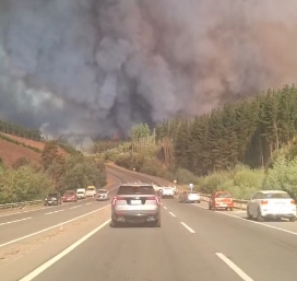 La Ruta del Itata se mantiene cerrada a la altura del sector Shell debido a un incendio forestal que afecta el entorno y reduce considerablemente la visibilidad en la vía. La situación fue reportada por conductores que transitaban por el lugar, quienes registraron una densa columna de humo cubriendo ambos sentidos de la carretera.